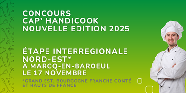 Il est encore temps de participer à l'édition 2025 du grand concours culinaire Cap'Handicook Vous êtes passionné et expérimenté en cuisine (traditionnelle ou collective) et vous souhaitez mettre en avant vos compétences professionnelles? Vous aimez les challenges et relever de nouveaux défis ? Alors inscrivez-vous vite…